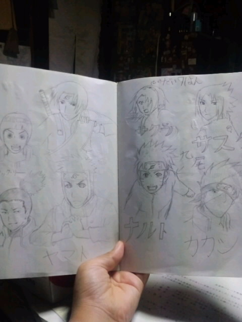 と、某有名忍者漫画のキャラを頼み、ささっと模写。